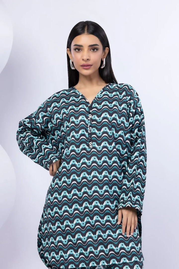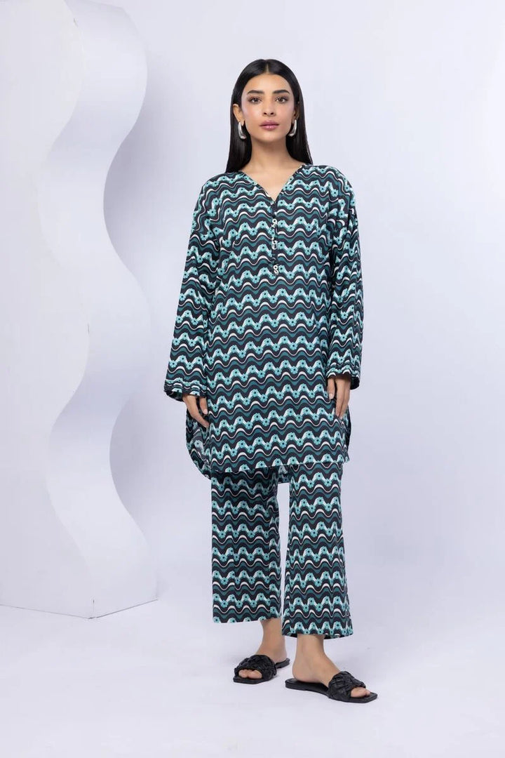 - Description: A 2-piece set featuring a short floral printed kurta and printed pants.