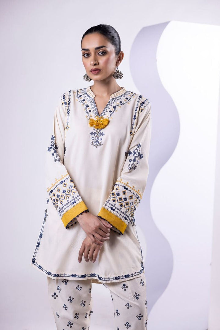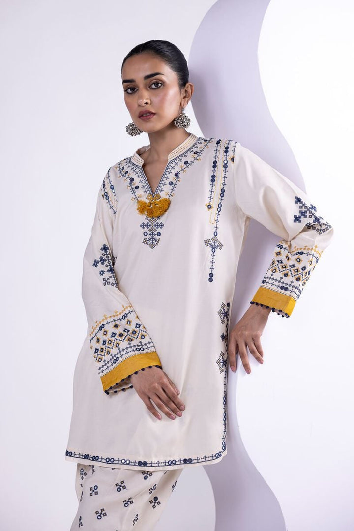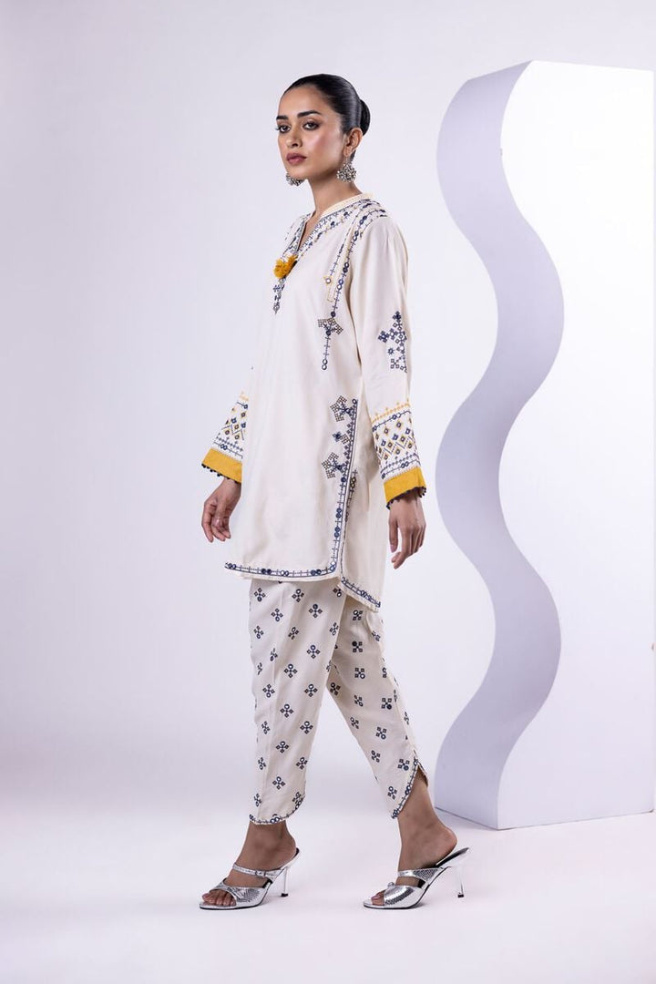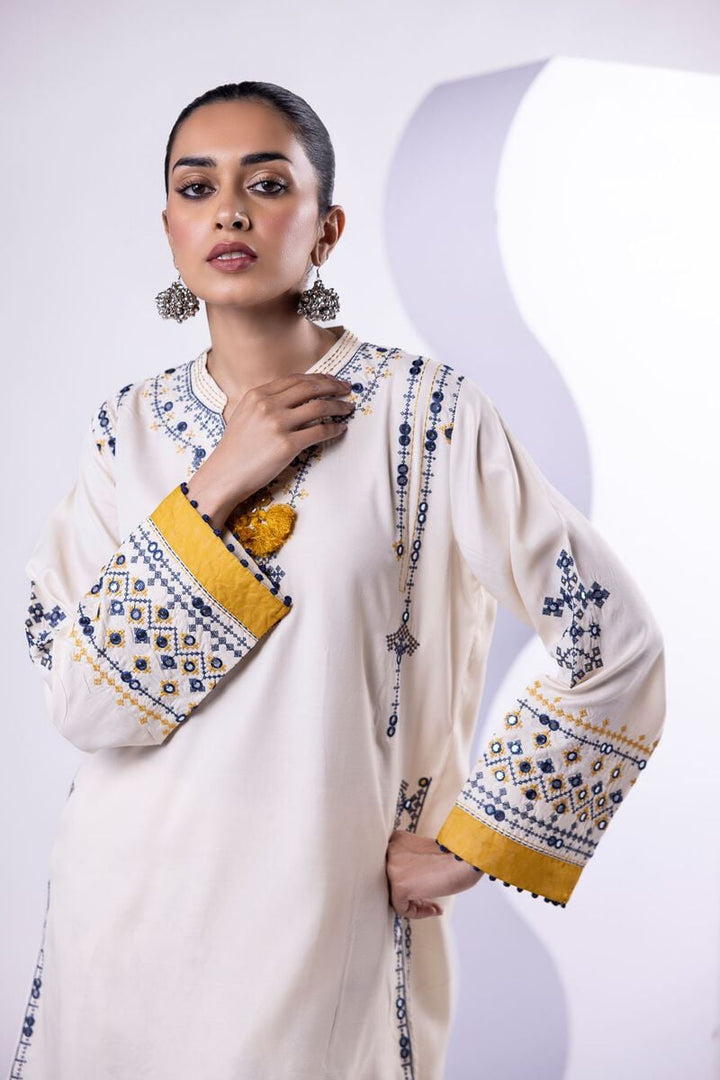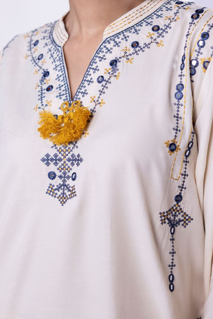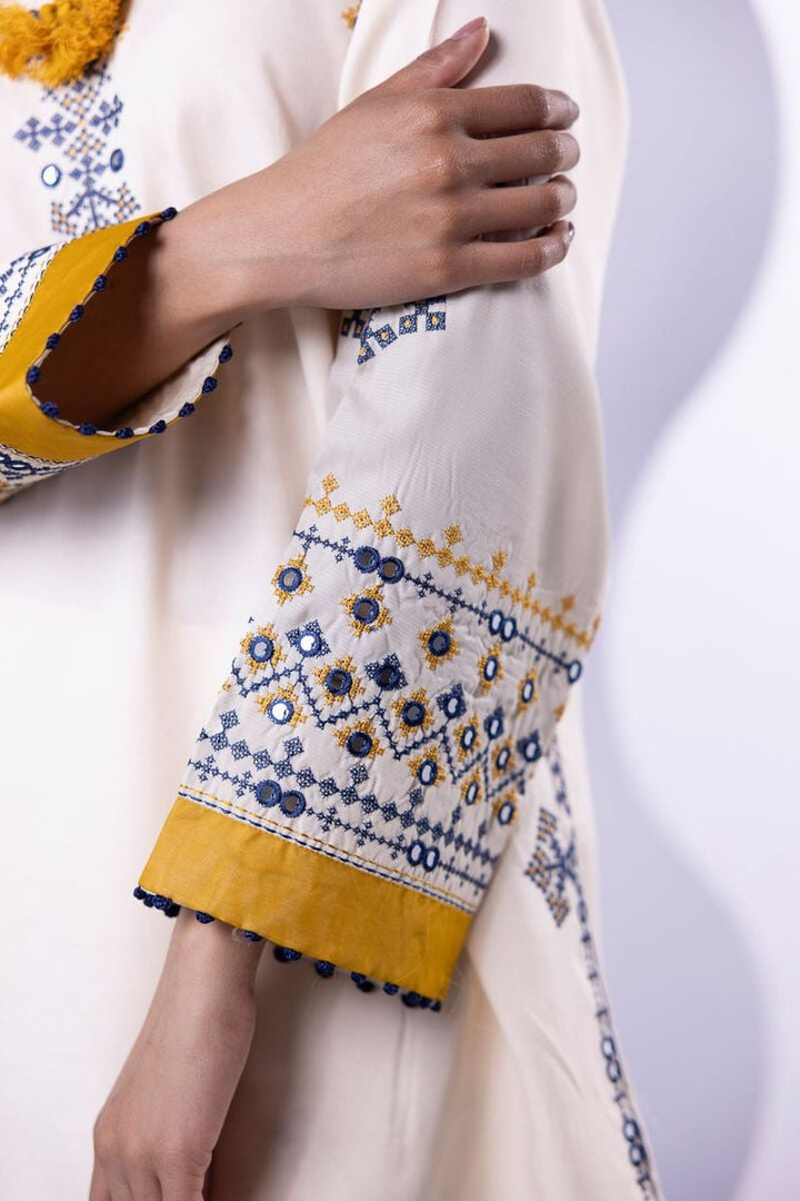- Description: A long floral printed kurta featuring a sleeveless design and a round neckline with floral embellishments.