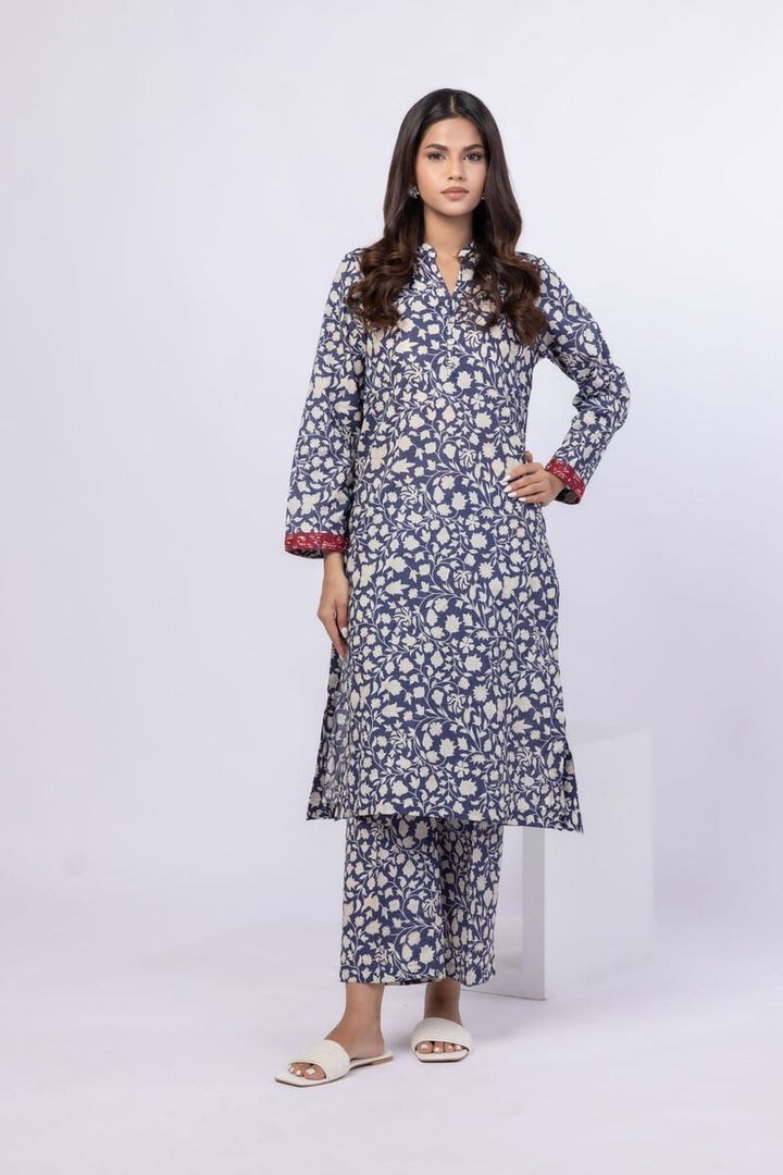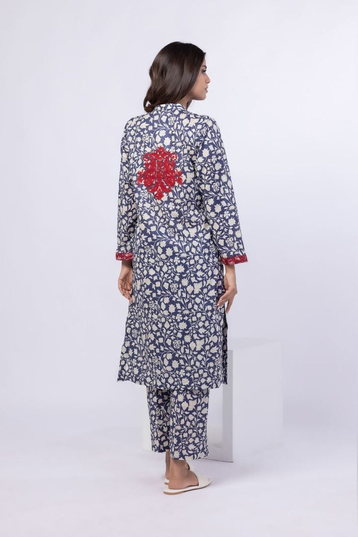 Description:Floral printed kurta featuring embroidered full sleeves, a band collar with V-cut, button detailing on the front, and embroidery at the back.