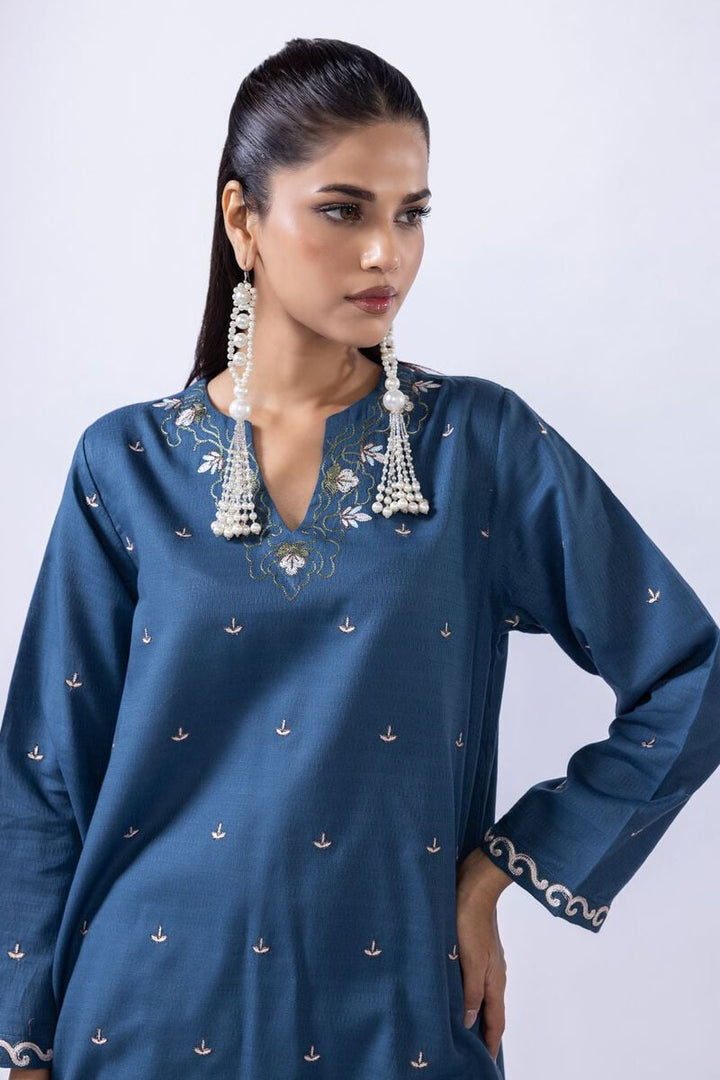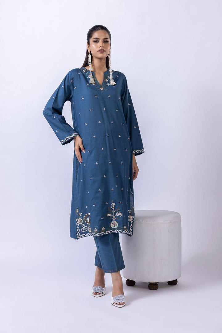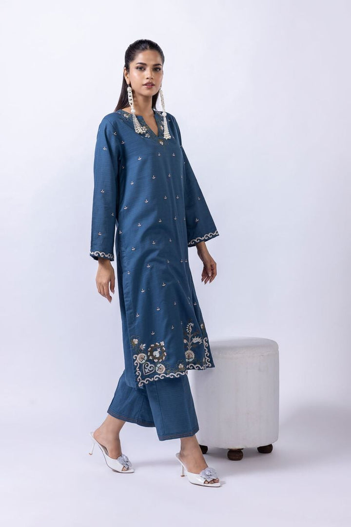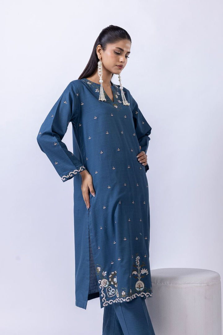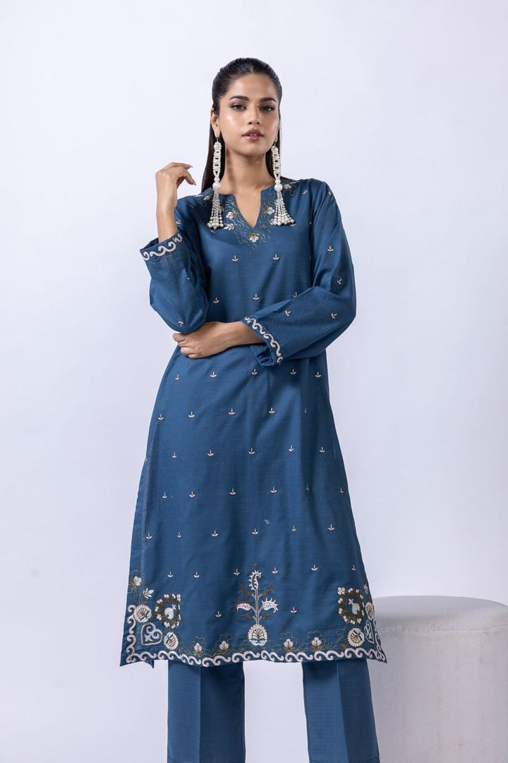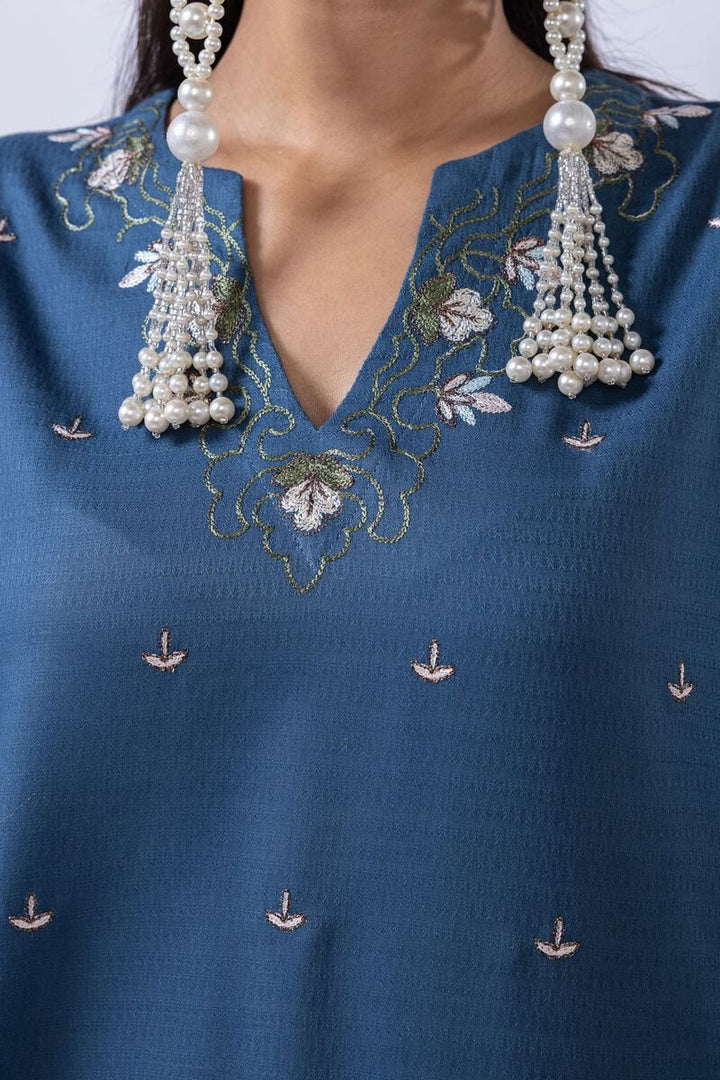 - Description: A floral embroidered kurta featuring full sleeves and a round neckline with a V-cut.