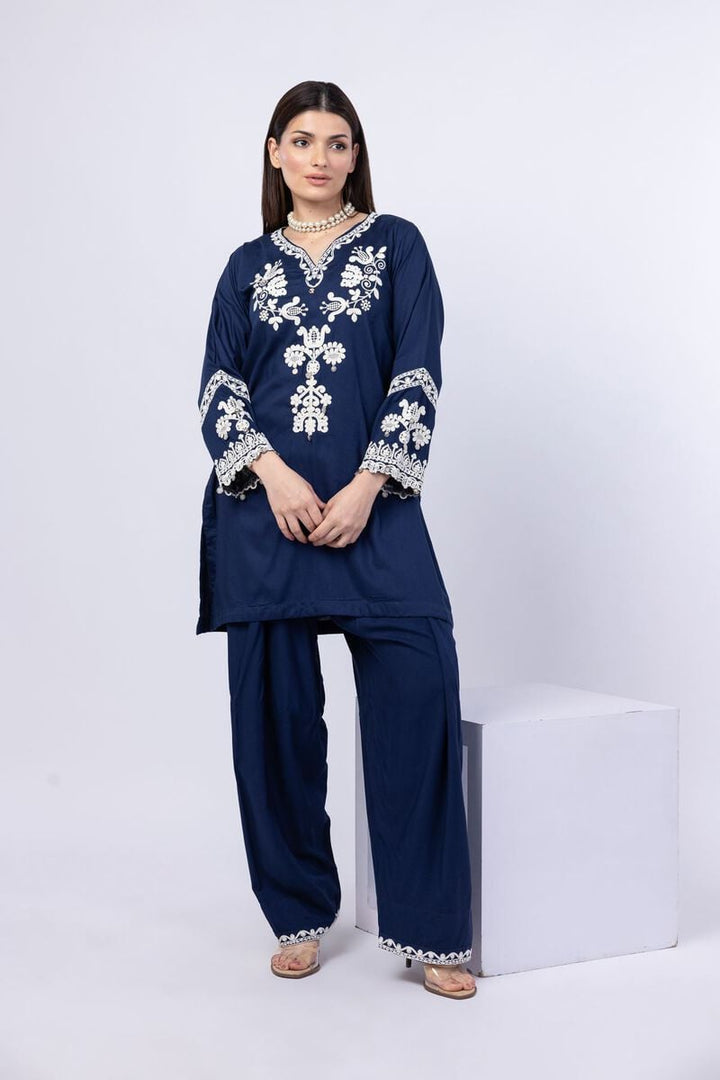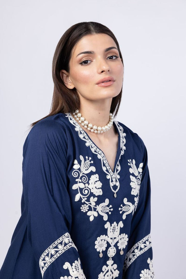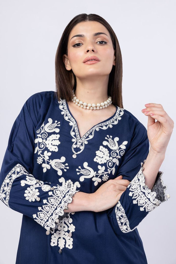 - Description: A floral embroidered kurta featuring full sleeves and a neckline with a V-cut.