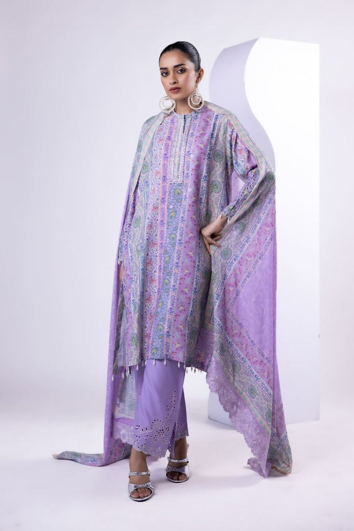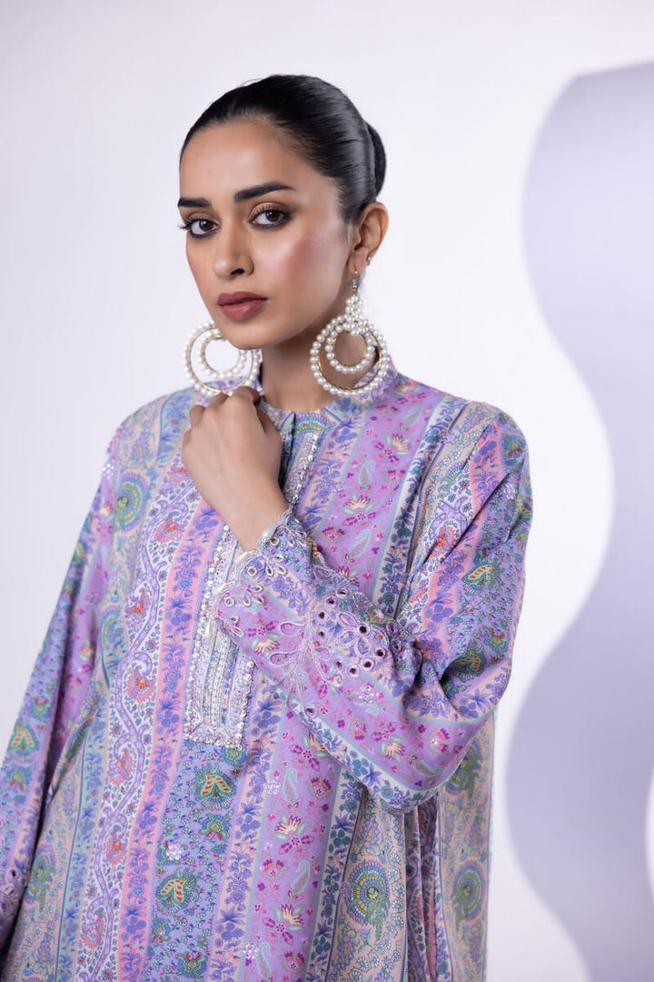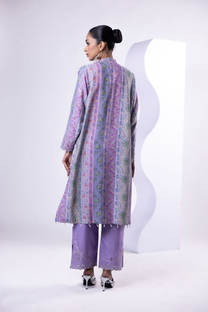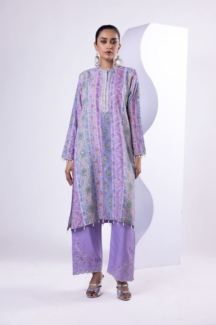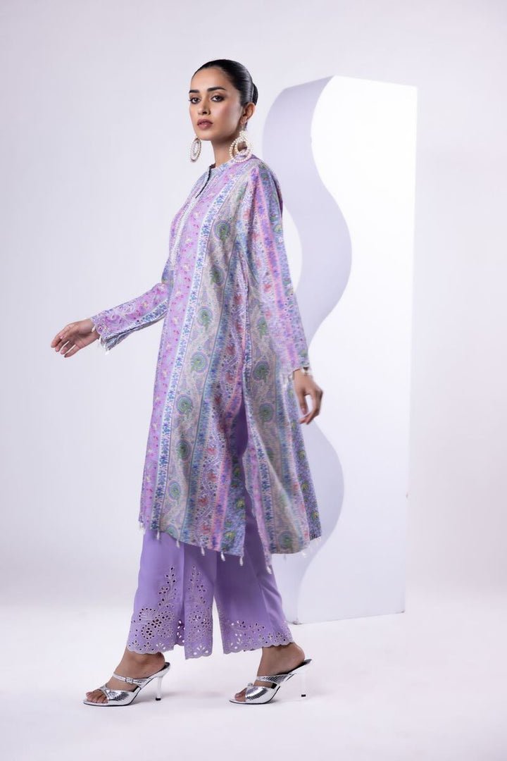 A floral print embroidered kurta featuring full sleeves and a round neckline.