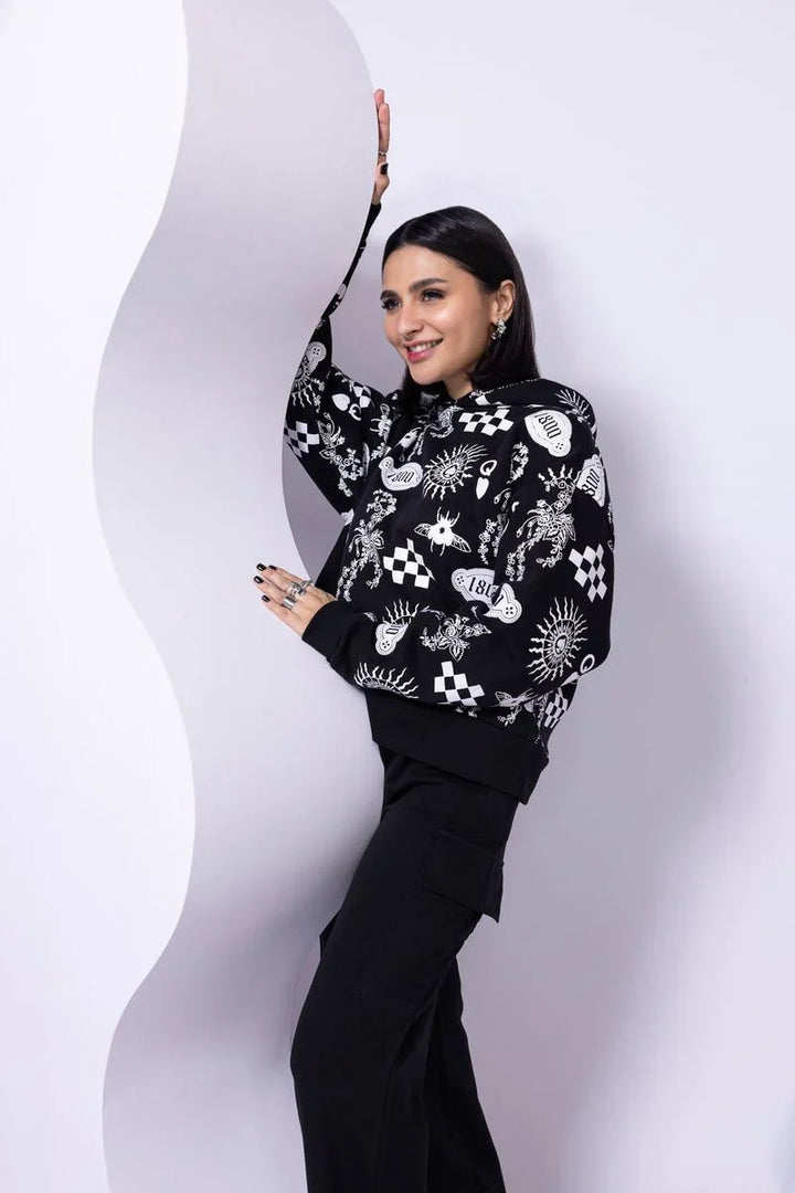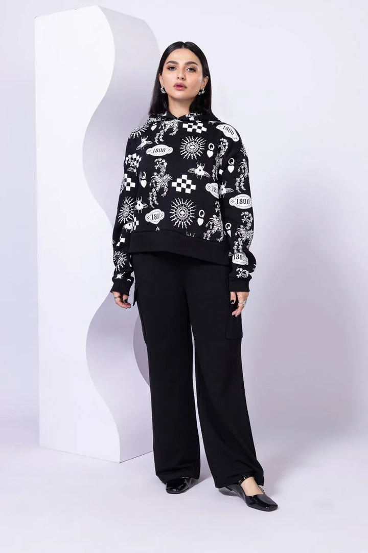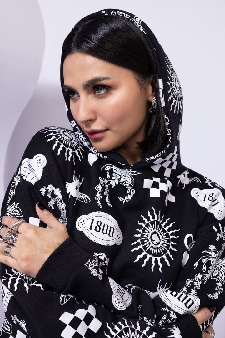 - Description: A printed pullover hoodie.