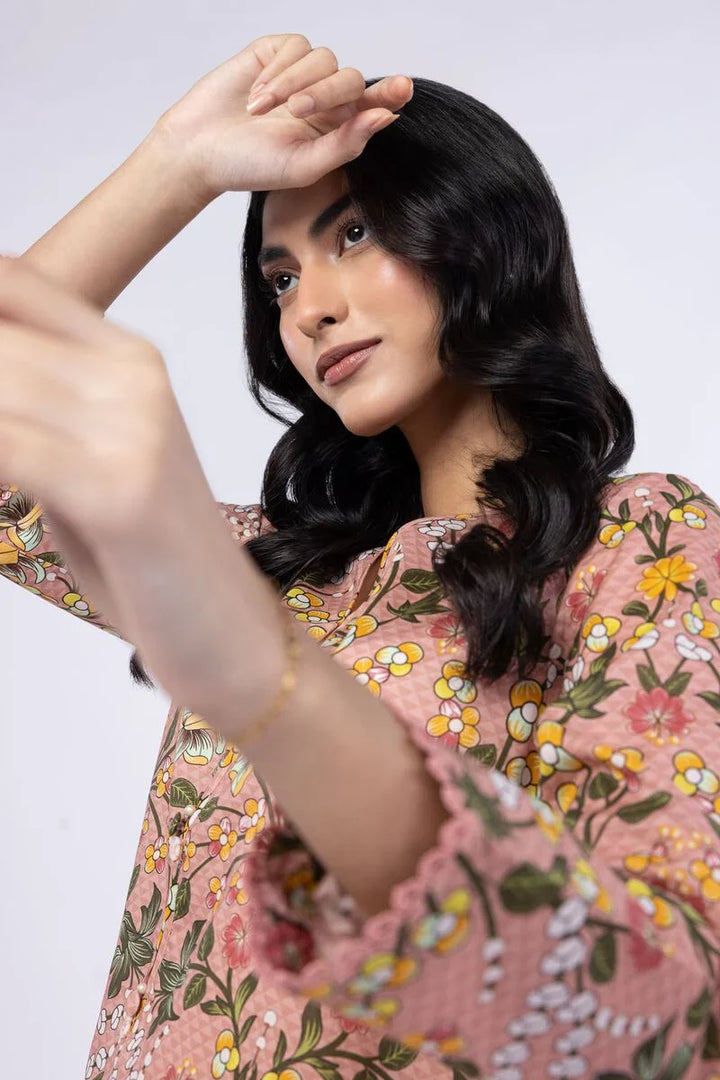 A short floral printed kurta featuring full sleeves, a round neckline with a V-cut and tassels on the front.