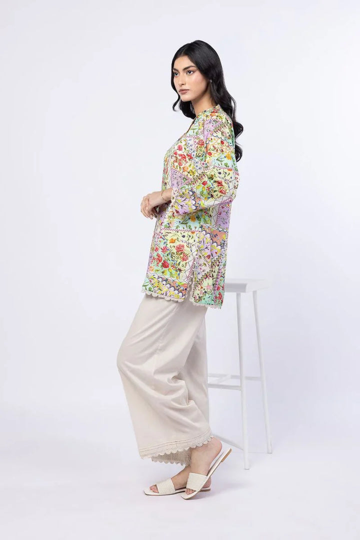 Solid pants with lace inserts and pintuck detailing near the hems.