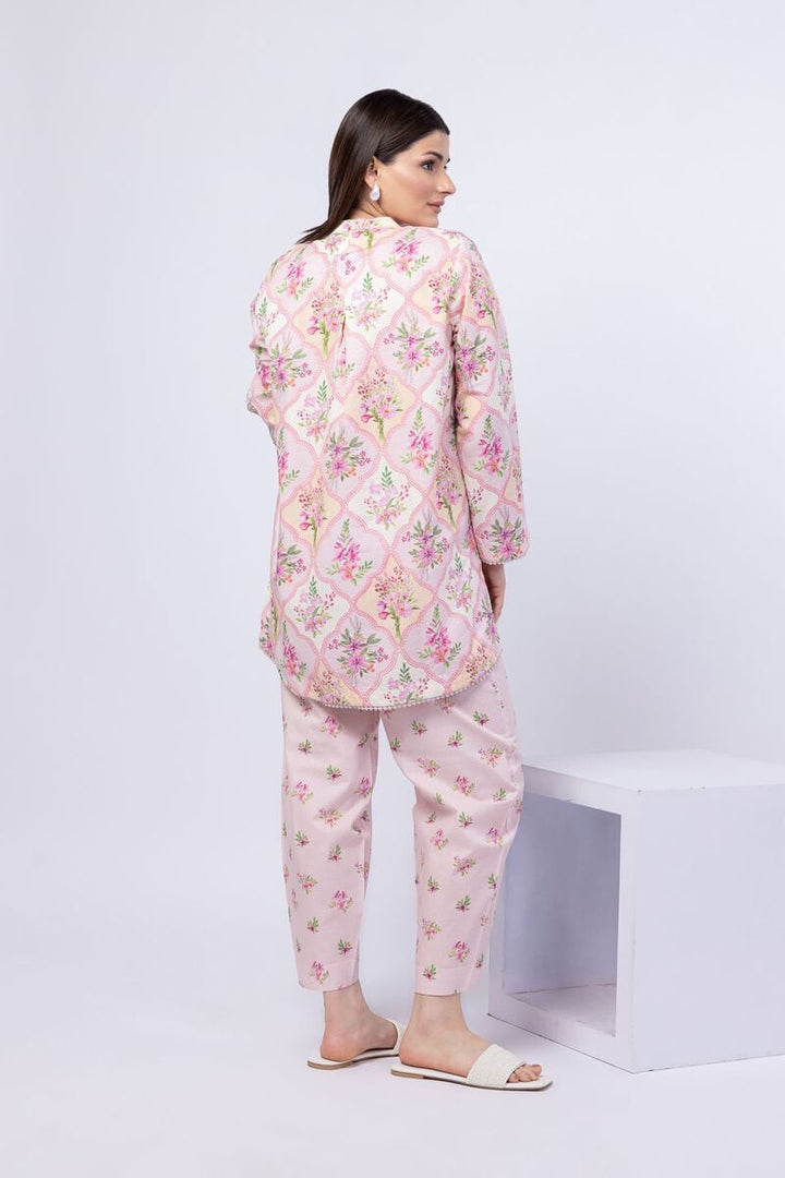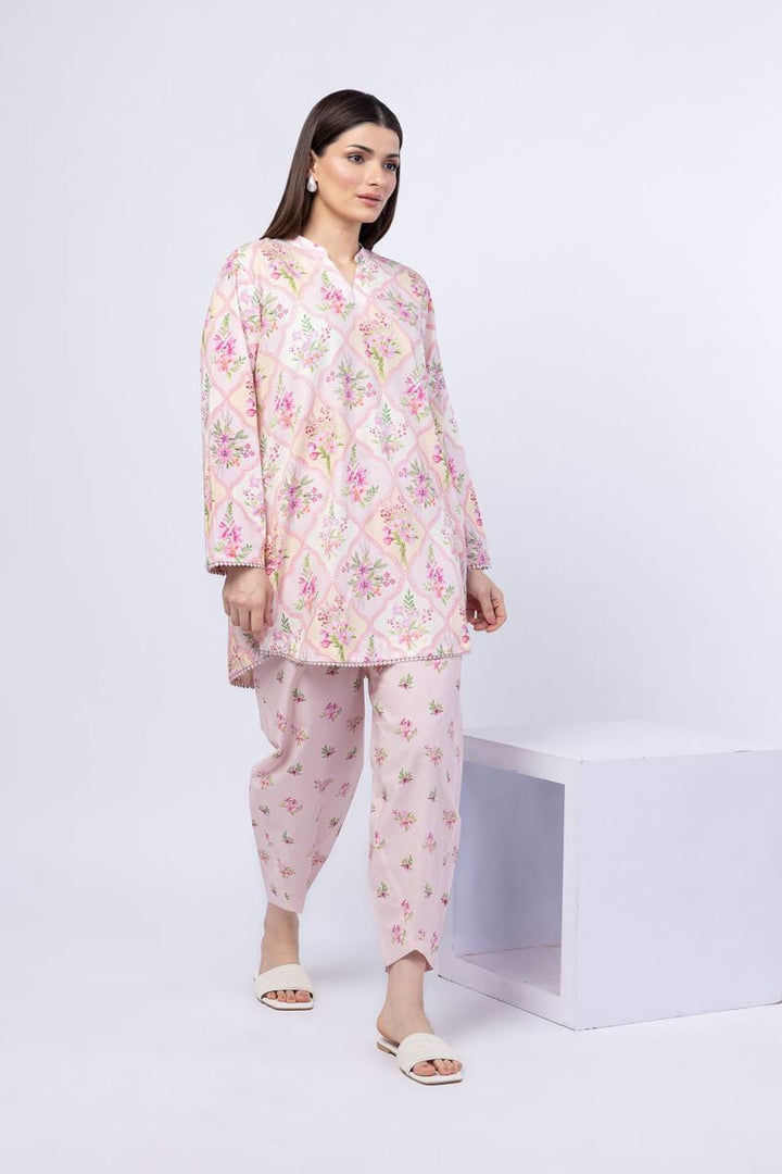 - Description: A short floral printed kurta featuring full sleeves and a round neckline with a V-cut.