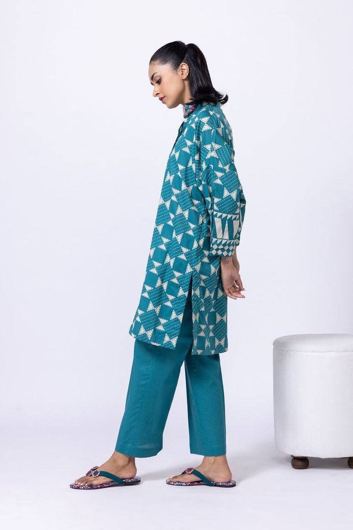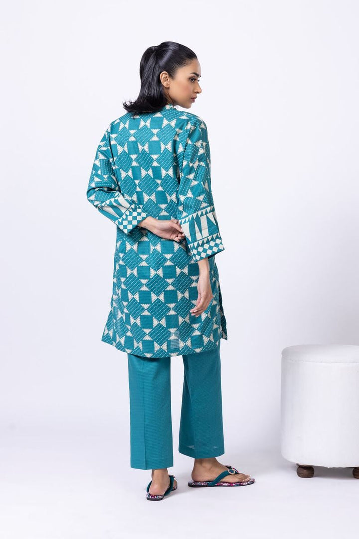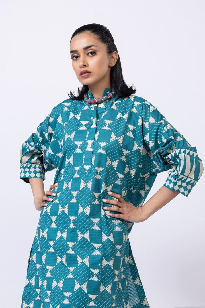 - Description: A short floral printed kurta featuring short sleeves and a band collar.