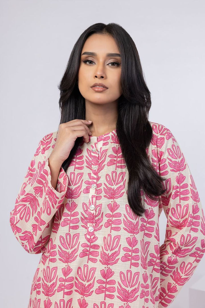- Description: A printed kurta featuring full sleeves, a round neckline with buttons and a rounded hem.